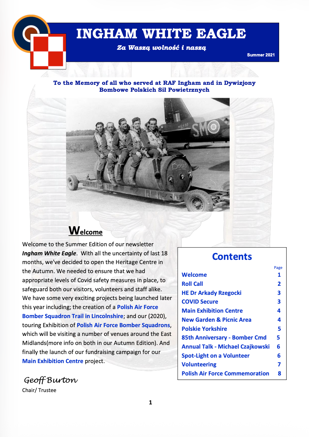 Welcome to the Summer Edition of our newsletter Ingham White Eagle. With all the uncertainty of last 18 months, we’ve decided to open the Heritage Centre in the Autumn. We needed to ensure that we had appropriate levels of Covid safety measures in place, to safeguard both our visitors, volunteers and staff alike.